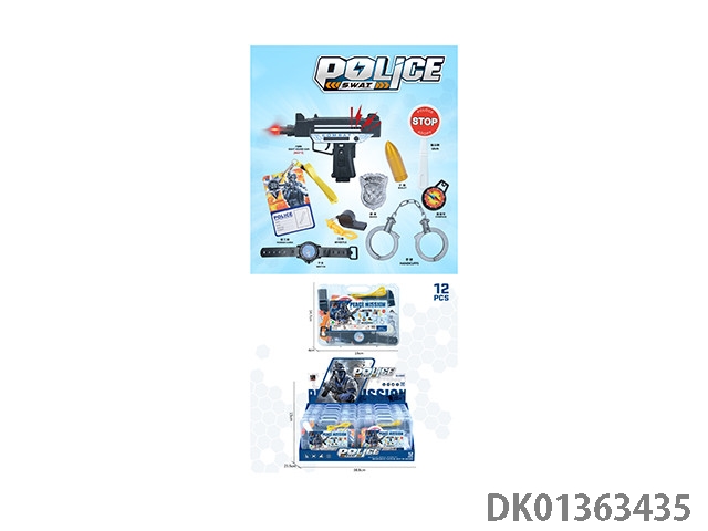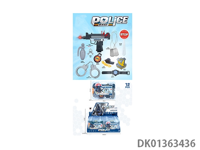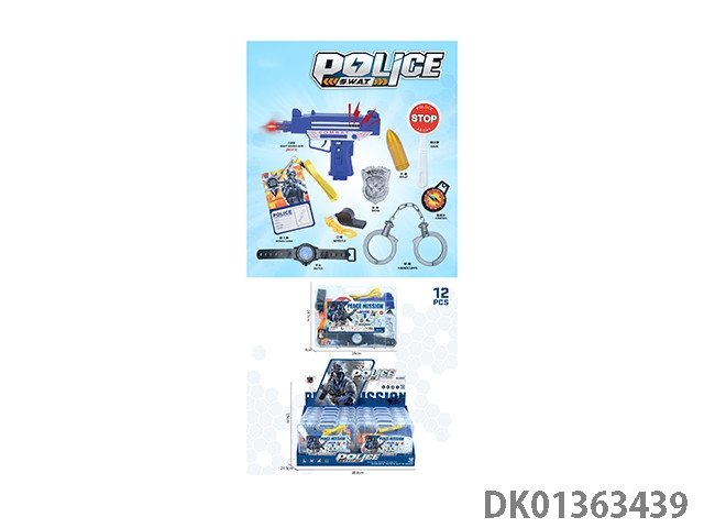 警察套(冲锋八音枪+吊牌+金子弹+警徽+指南针+手表+口哨+手铐+停车牌)12只装
