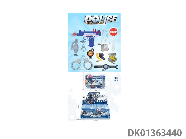警察套(冲锋八音枪+口哨+警徽+手铐+手雷+指南针+手表+吊牌+停车牌)12只装