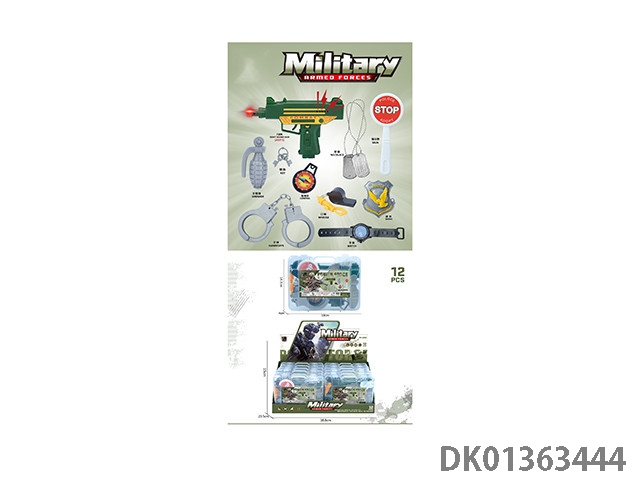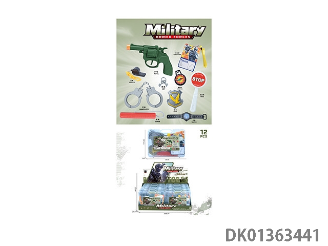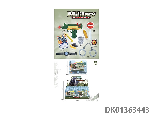军事套(冲锋八音枪+吊牌+金子弹+警徽+指南针+手表+口哨+手铐+停车牌)12只装