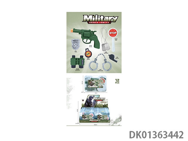 军事套(手铐+吊牌+停车牌+打响左轮枪+口哨+警徽+指南针+手表+炸弹)12只装