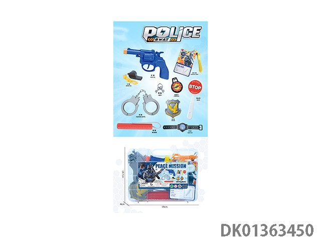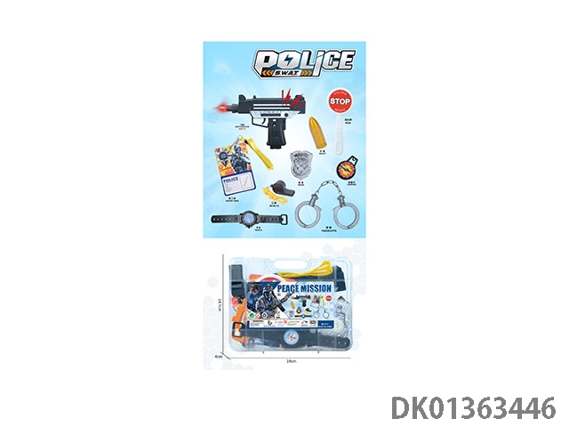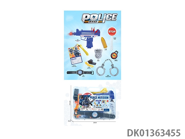 警察套(冲锋八音枪+吊牌+金子弹+警徽+指南针+手表+口哨+手铐+停车牌)