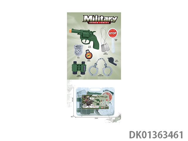 军事套(手铐+吊牌+停车牌+打响左轮枪+口哨+警徽+指南针+手表+炸弹)