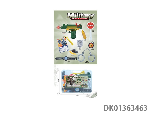 军事套(冲锋八音枪+吊牌+金子弹+警徽+指南针+手表+口哨+手铐+停车牌)