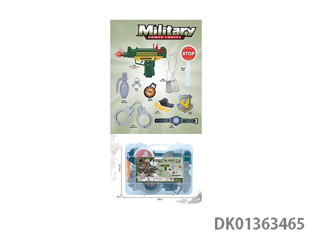 军事套(冲锋八音枪+口哨+警徽+手铐+手雷+指南针+手表+吊牌+停车牌)