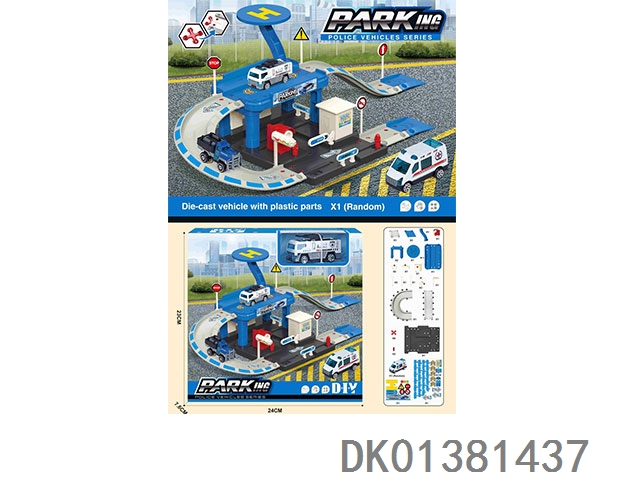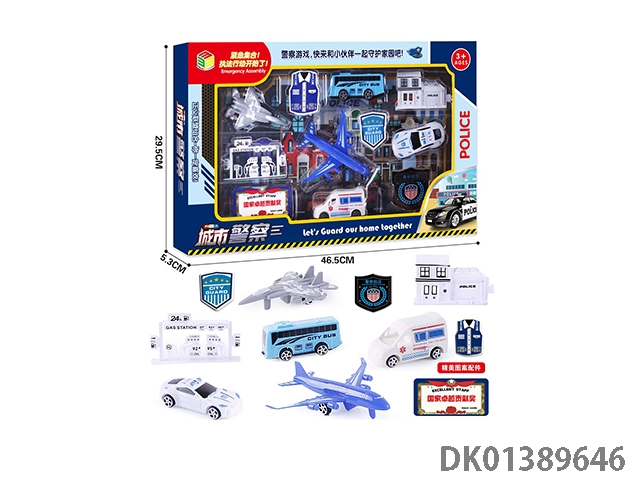 多功能(变色)警察洗车场套装(配合金变色车1只、路标7)