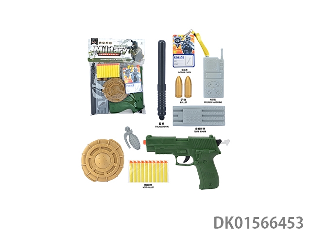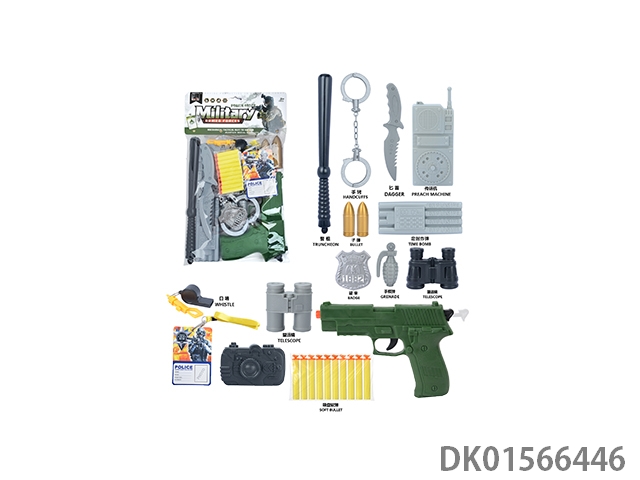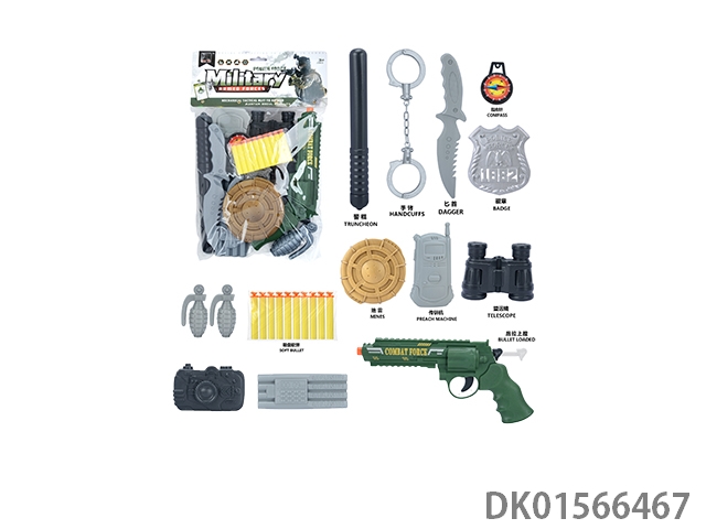 军事套(警棍+对讲机+刀+望远镜*2+手铐+定时炸弹+警徽+地雷+金子弹*5+五四软弹枪)