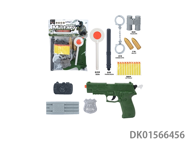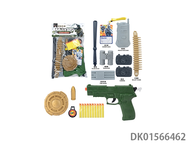 军事套(停车牌+警棍+手铐+望远镜+金子弹*2+相机+定时炸弹+警徽+五四软弹枪)