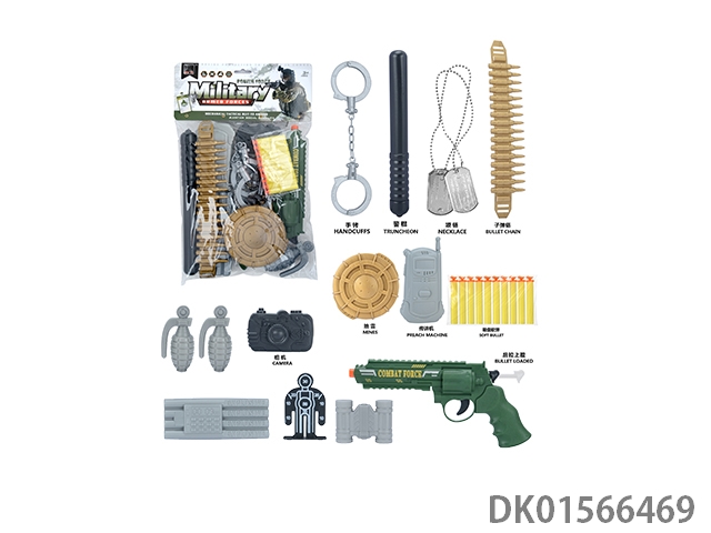 军事套(警棍+吊牌+望远镜+对讲机+定时炸弹+相机*2+子弹链条+地雷+手雷+指南针+子弹夹+五四软弹枪)