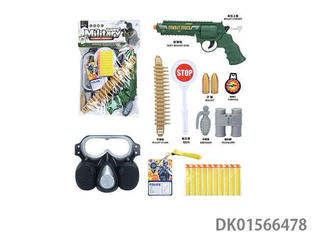 军事套(左轮软弹枪+子弹链条+停车牌+金子弹*2+指南针+手雷+望远镜+面具+吊牌)