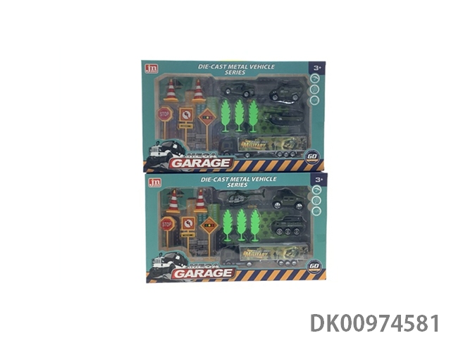 军事坦克合金车拖头货柜套装(大号加厚)
