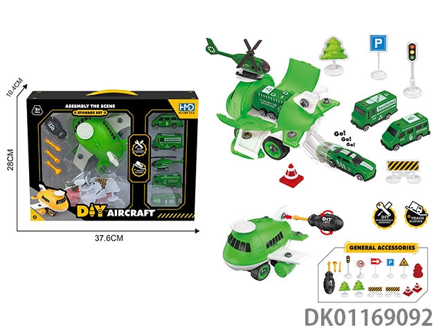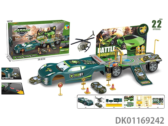 <变形车停车场军事系列>配1只合金飞机1只合金车子
