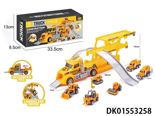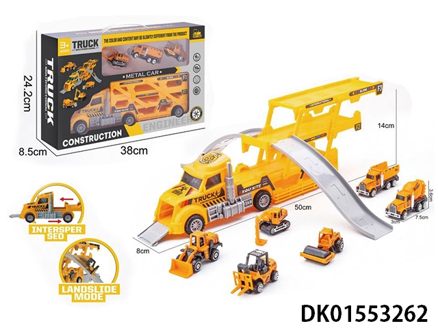 折叠货柜车-合金工程车轨道场景(黄色货柜车)