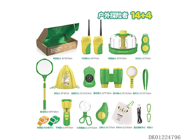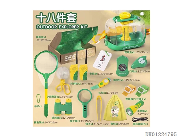 儿童昆虫观察盒户外男孩玩具探险套装放大镜口哨头灯镊子捕虫网望远镜指南针男孩捕捉器蚕宝宝养蚕套装