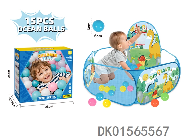 儿童帐篷球池-带投篮-带15PCS海洋球-恐龙