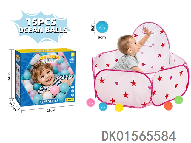 儿童帐篷球池-带投篮-带15PCS海洋球-粉色星星