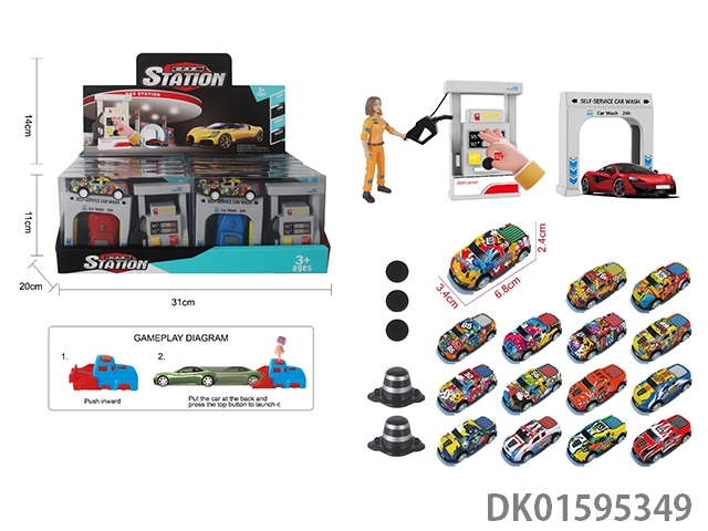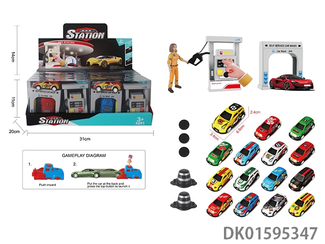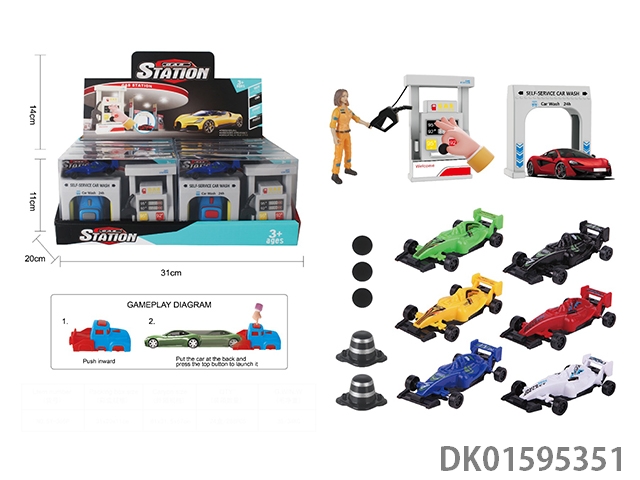 加油站洗车场景组合带弹射1:68合金F1赛车(12PCS)