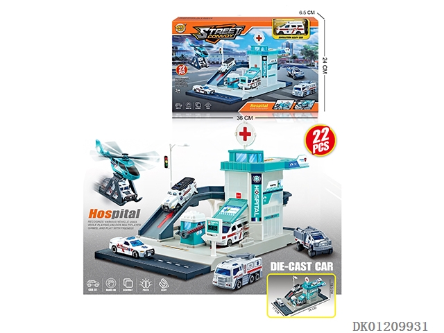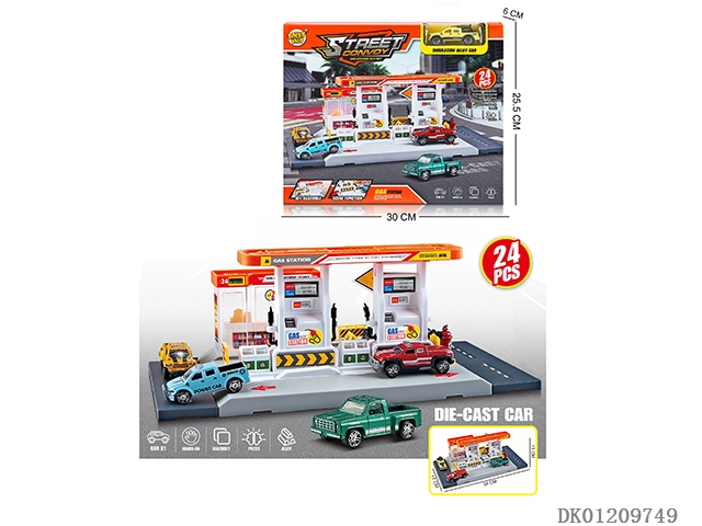城市加油站警察局组合配2只合金车(停车场)