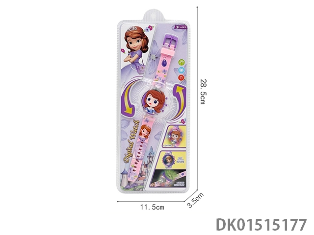 4款灯光音乐翻盖电子圆形手表配彩带图案6只/板