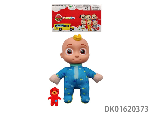 10寸搪胶头棉身cocomelon超级宝贝带主题音乐4首不同的主题音乐COCO带着毛绒塞棉小熊