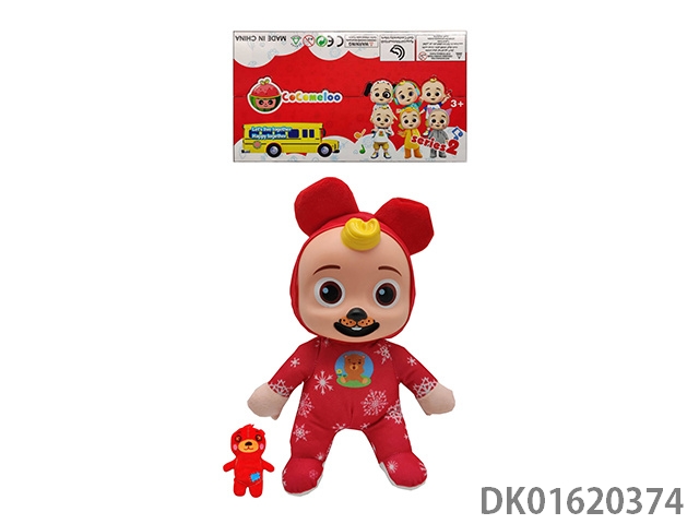10寸搪胶头棉身cocomelon超级宝贝带主题音乐4首不同的主题音乐和圣诞音乐毛绒万圣熊COCO带着塞棉小熊