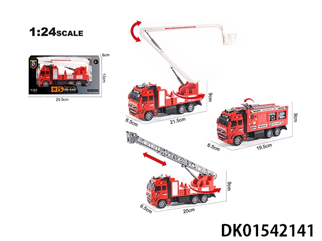 英文1:24压铸锌合金消防系列(云梯车/登高车/水罐车)3款混装