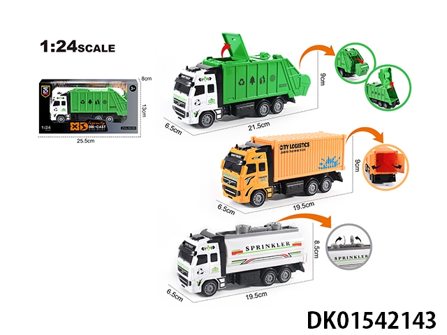 英文1:24压铸锌合金城市系列(环卫车/洒水车/货柜车) 3款混装