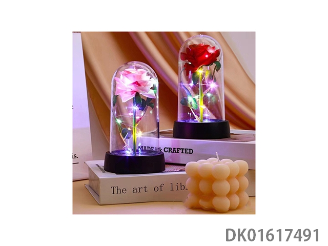 小号塑料罩单支玫瑰花(暖灯)