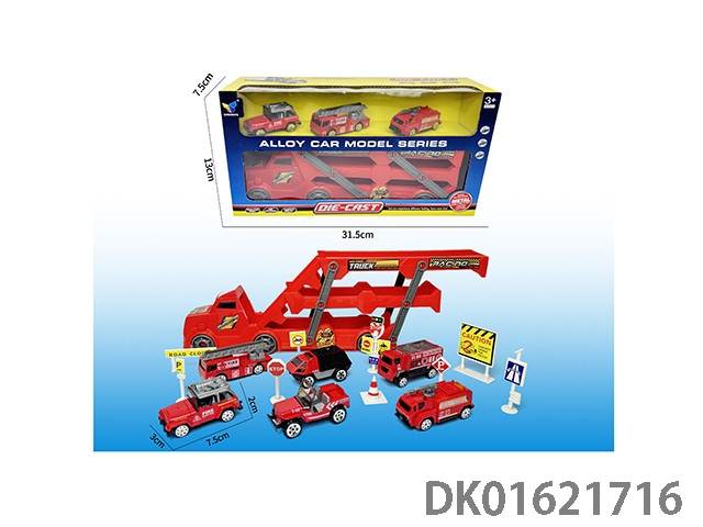 三层拖车+3只消防合金车套装