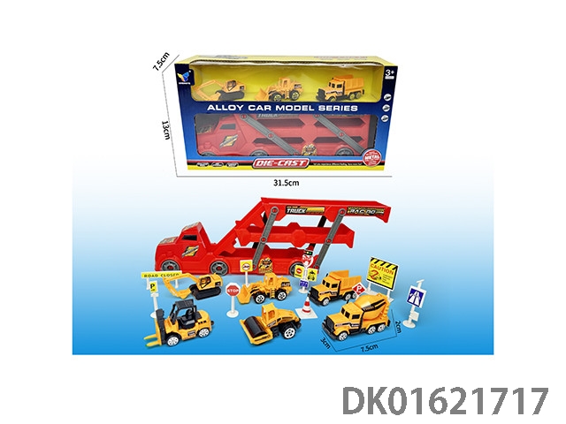 三层拖车+3只工程合金车套装