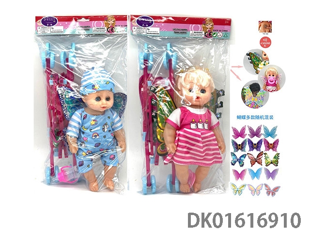 12寸多款混装空身四声音乐小天使娃娃+推车+奶瓶
