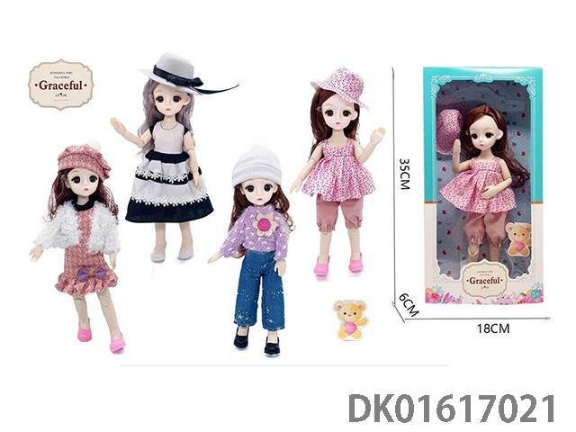12寸30厘米4款混装3D真眼活动关节高品质bjd时尚娃娃+帽子