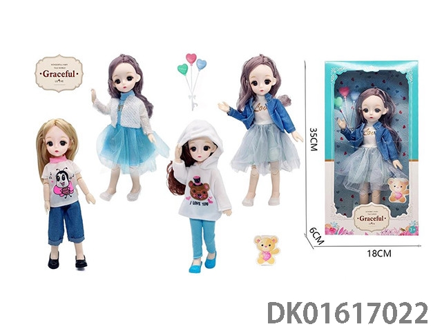 12寸30厘米4款混装3D真眼活动关节高品质bjd时尚娃娃+气球