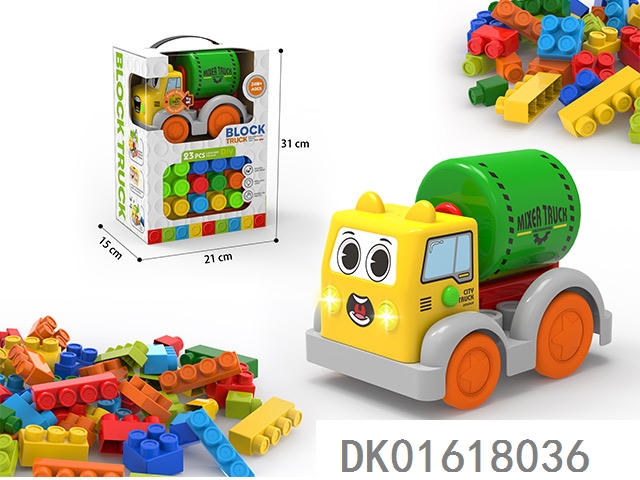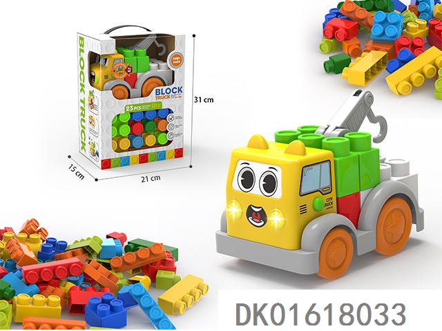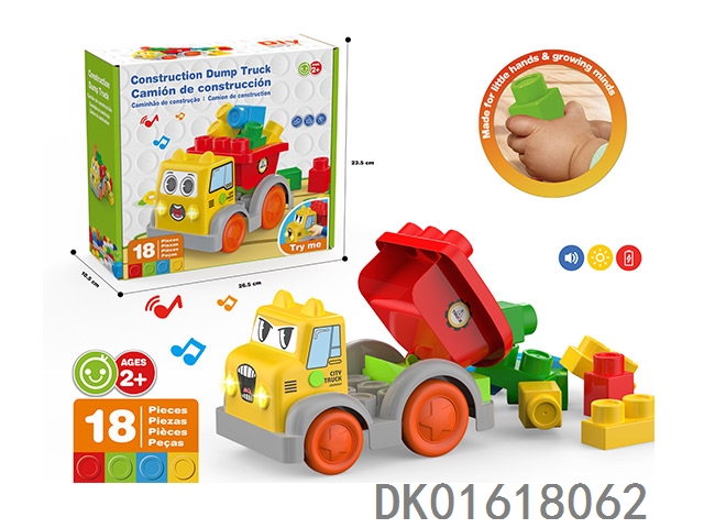 灯光音乐益智积木自卸车(18块)包3粒AG13(滑行车)