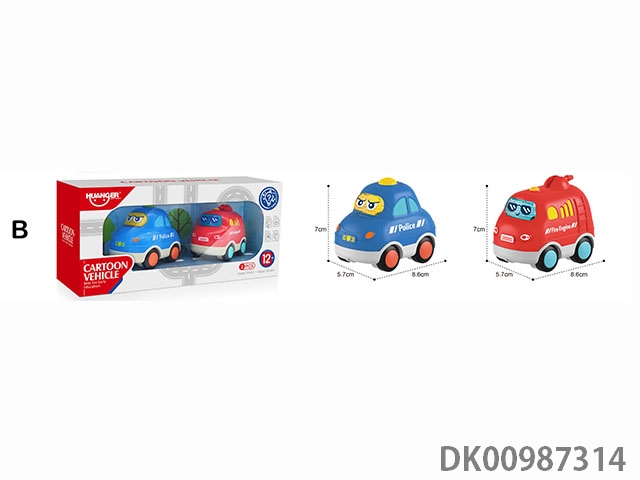 Fun sound and light sliding cartoon car 2 sets - type b (police car, fire truck)