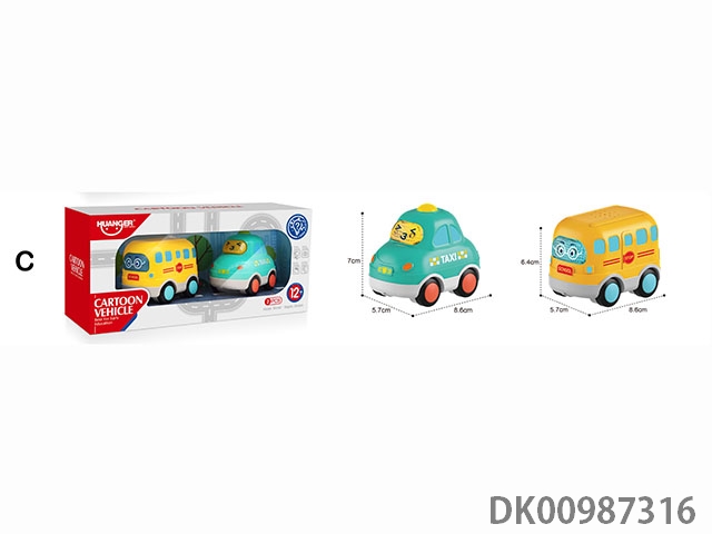 Fun sound and light sliding cartoon car 2 sets - type c (taxi, school bus)