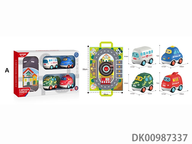 Fun sound and light sliding cartoon car (4 pcs.) and handbag - type a