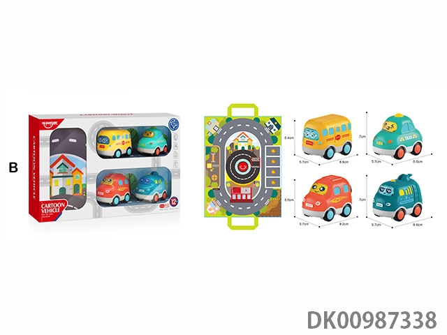 Fun audio-visual sliding cartoon car (4 packs and handbags) - type b