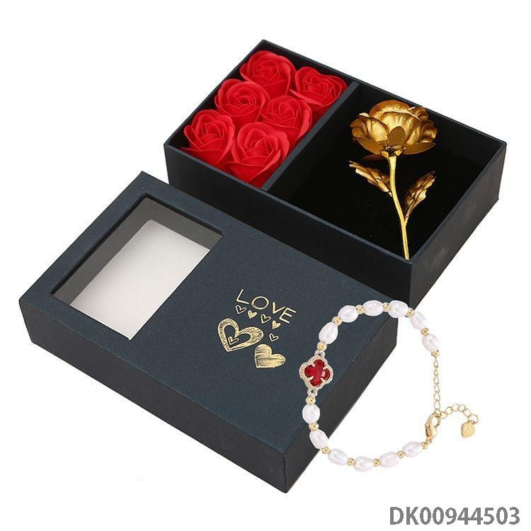 6 Soap roses and gold foil roses - with pearl ruby bracelet