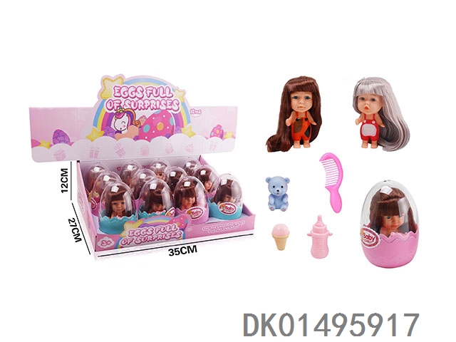 Egg set long haired doll and comb, ice cream and animal and cone 12pcs/box