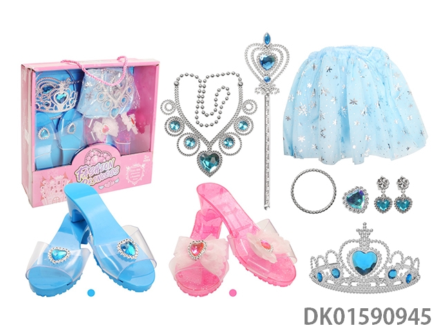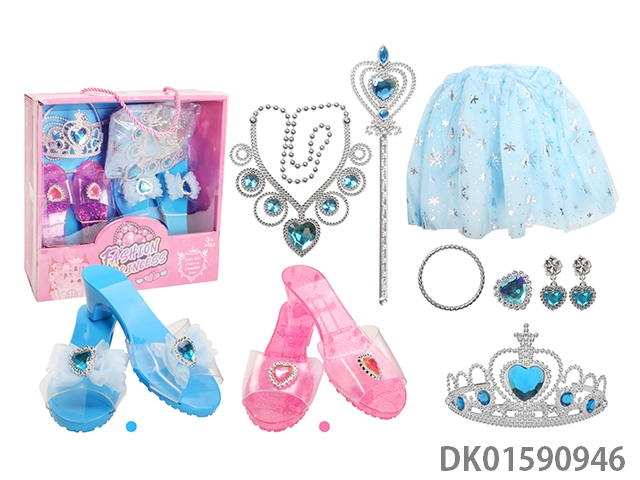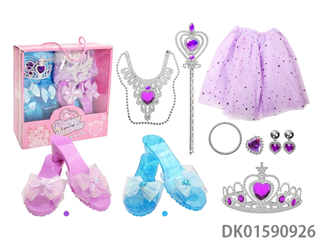 Mingben blue peach heart diamond and solid purple butterfly bead flower princess shoe set