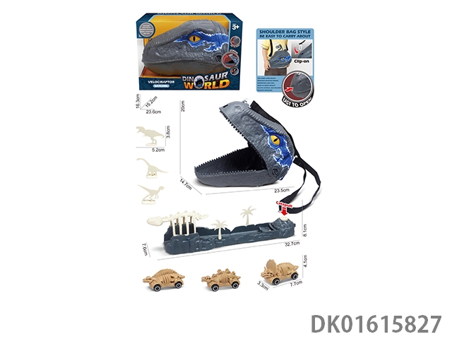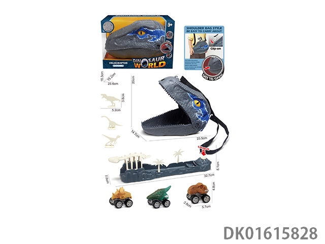 Velociraptor storage backpack with 3 skeleton dinosaur cubs and catapult skeleton accessories