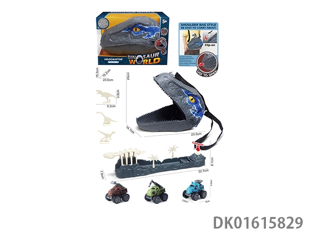Tyrannosaurus rex storage backpack, 3 engineering dinosaur cubs, and catapult skeleton accessories
