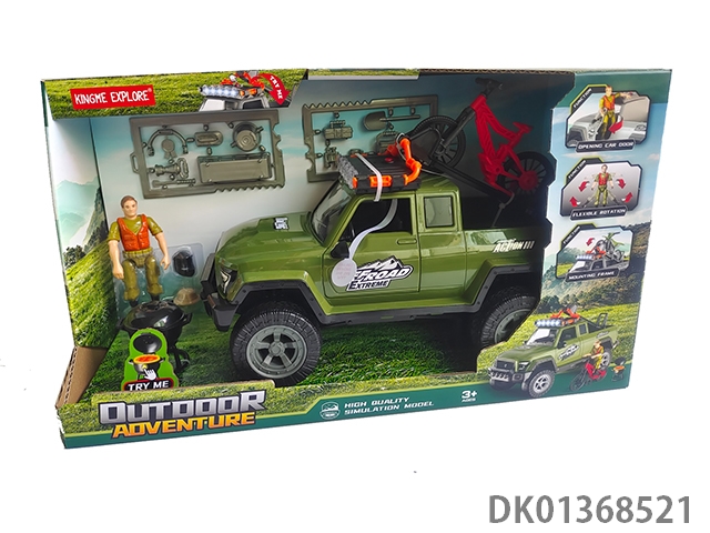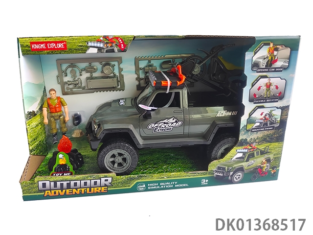 Outdoor series, single row sliding passenger off-road vehicle (with lights&sound) combined with motorcycle, bonfire (with lights&sound)