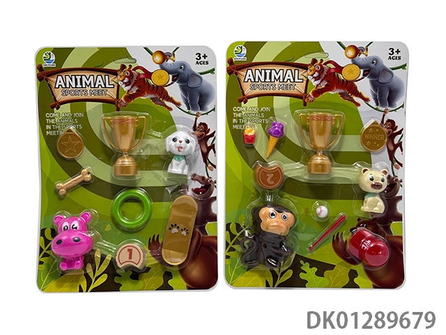 Monkey, bear, puppy, hippopotamus and accessories