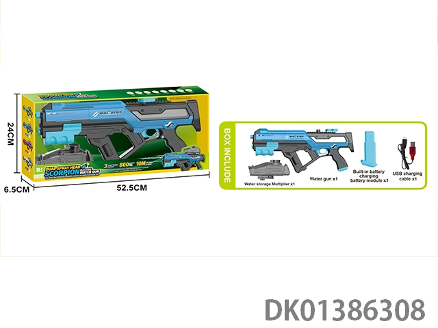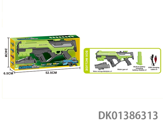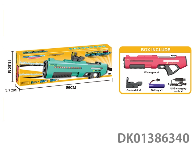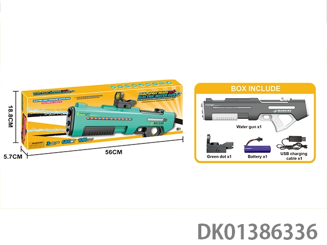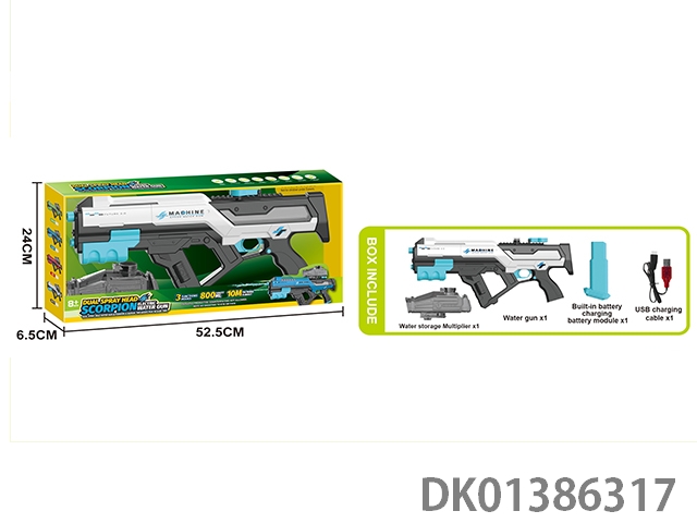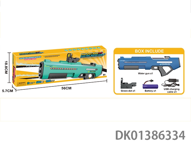 Three function dual nozzle electric water gun, dual nozzle dual spray sailor self connecting belt with scrolling light, electric/manual/simultaneous use