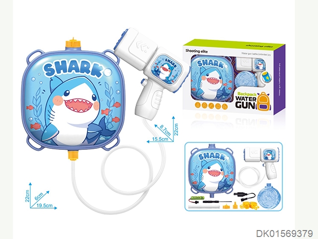 Playful shark water gun and backpack (usb charging cable, lithium battery, and screwdriver)