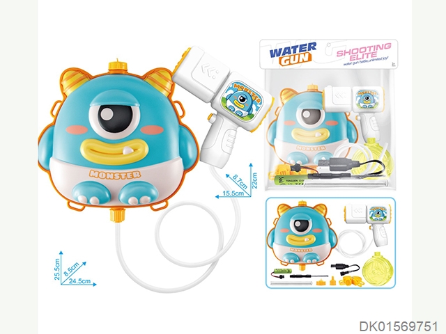 One eyed monster water gun and backpack (usb charging cable, lithium battery, and screwdriver)