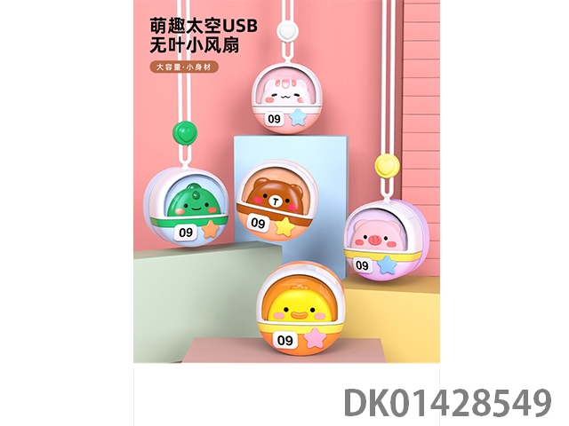 Cute space rope leaveless charging fan