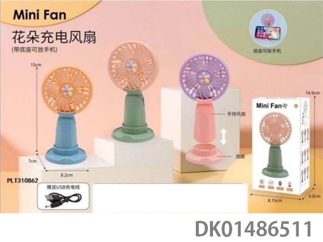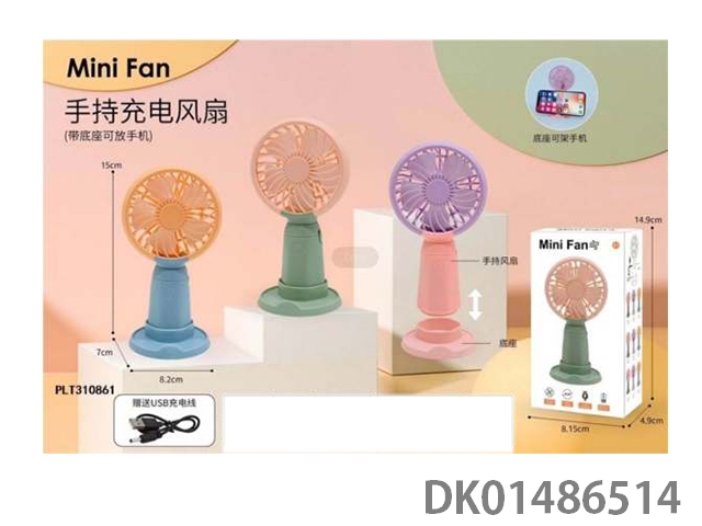 Handheld usb charging fan (with base to hold mobile phone)