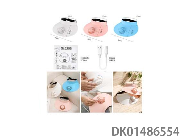 White/pink/blue hat charging fan